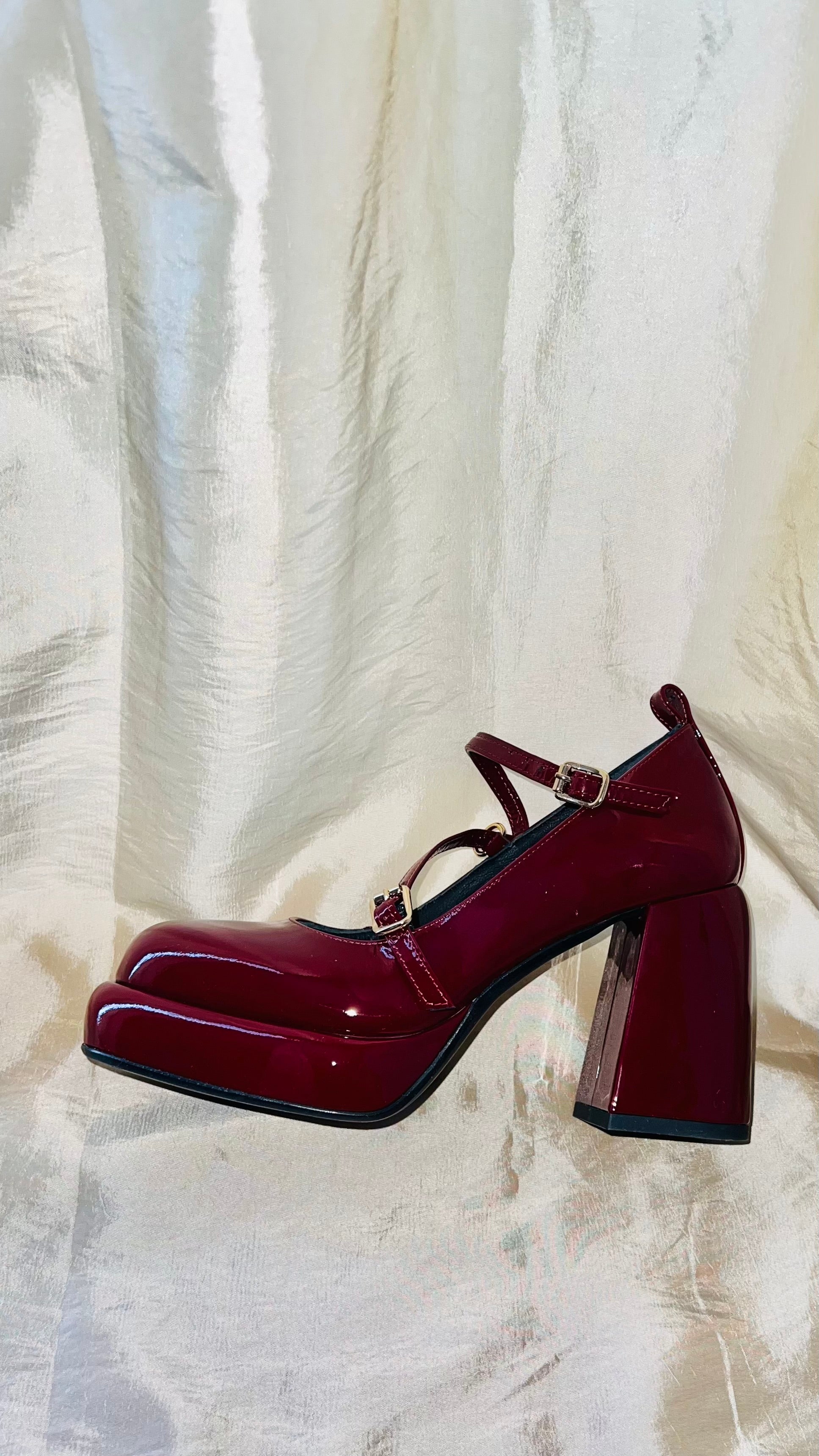 Angeleye - Lace Plunge Neck Faux Wrap Midi Dress in Burgundy