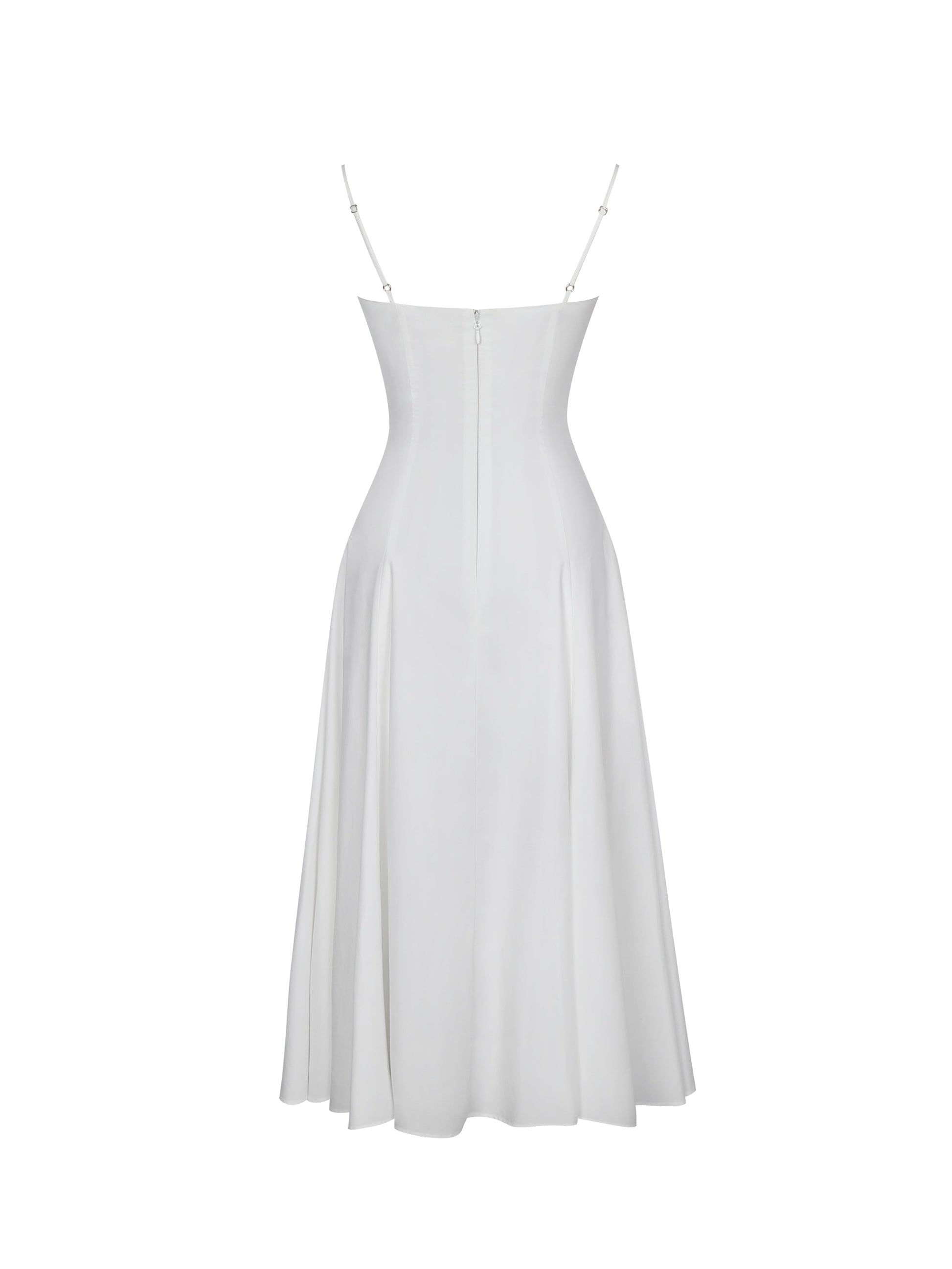 Corinne White Poplin Flared Midi Dress with Removable Bow