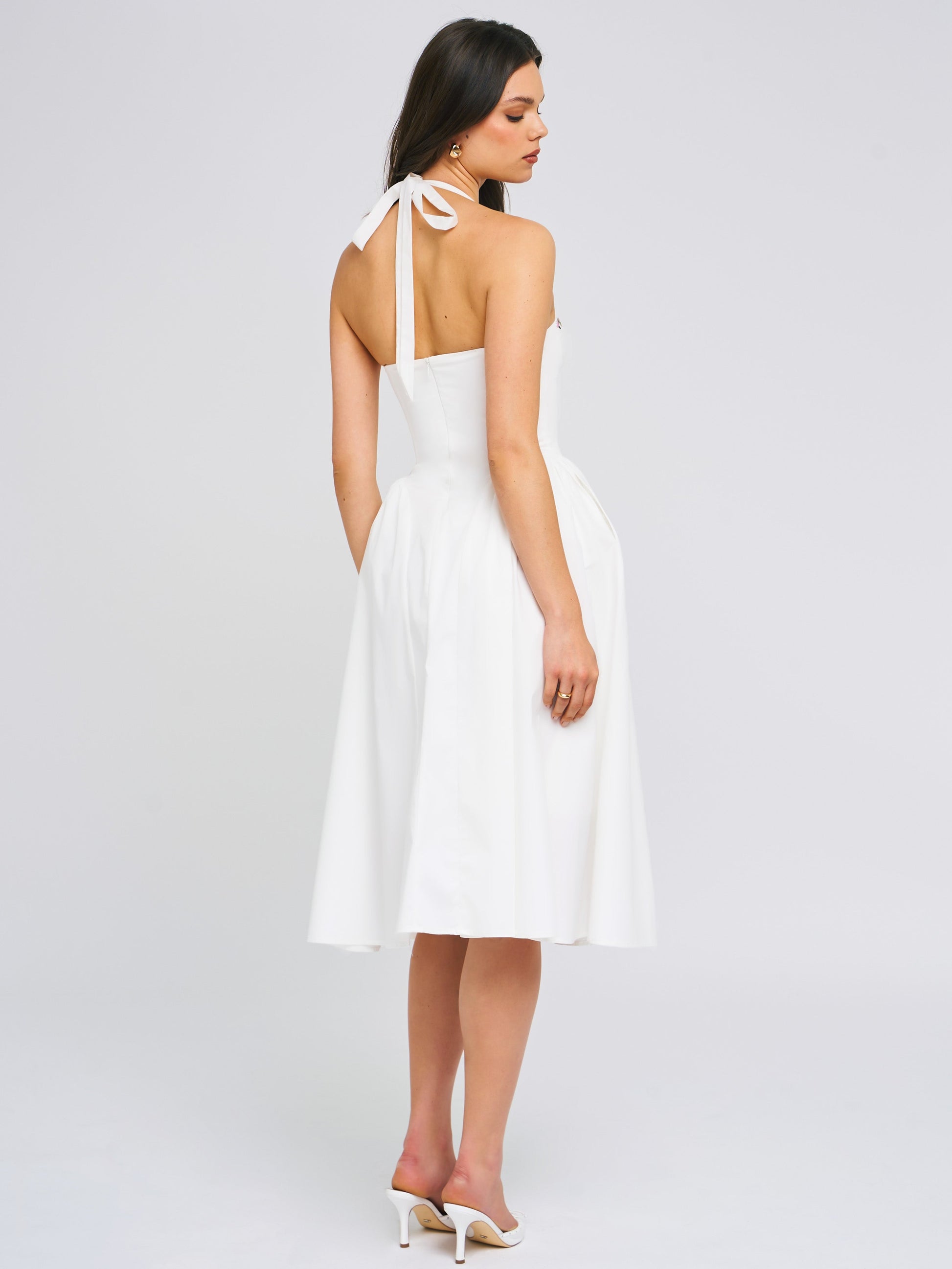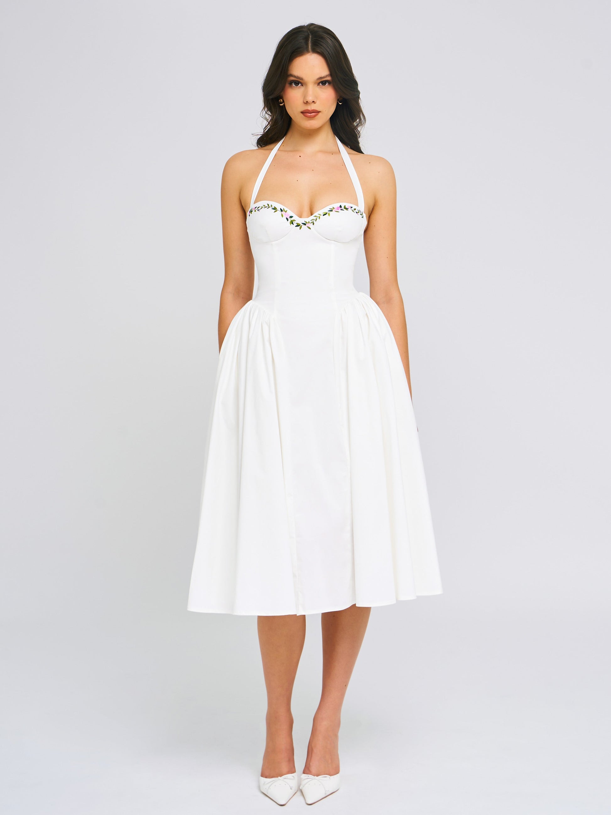 Gianna White Embroidered Halter Maxi Dress