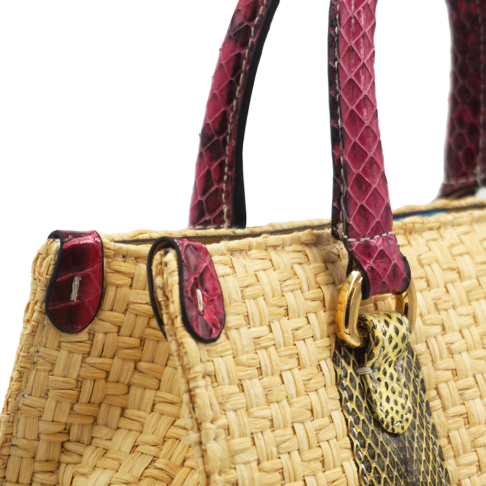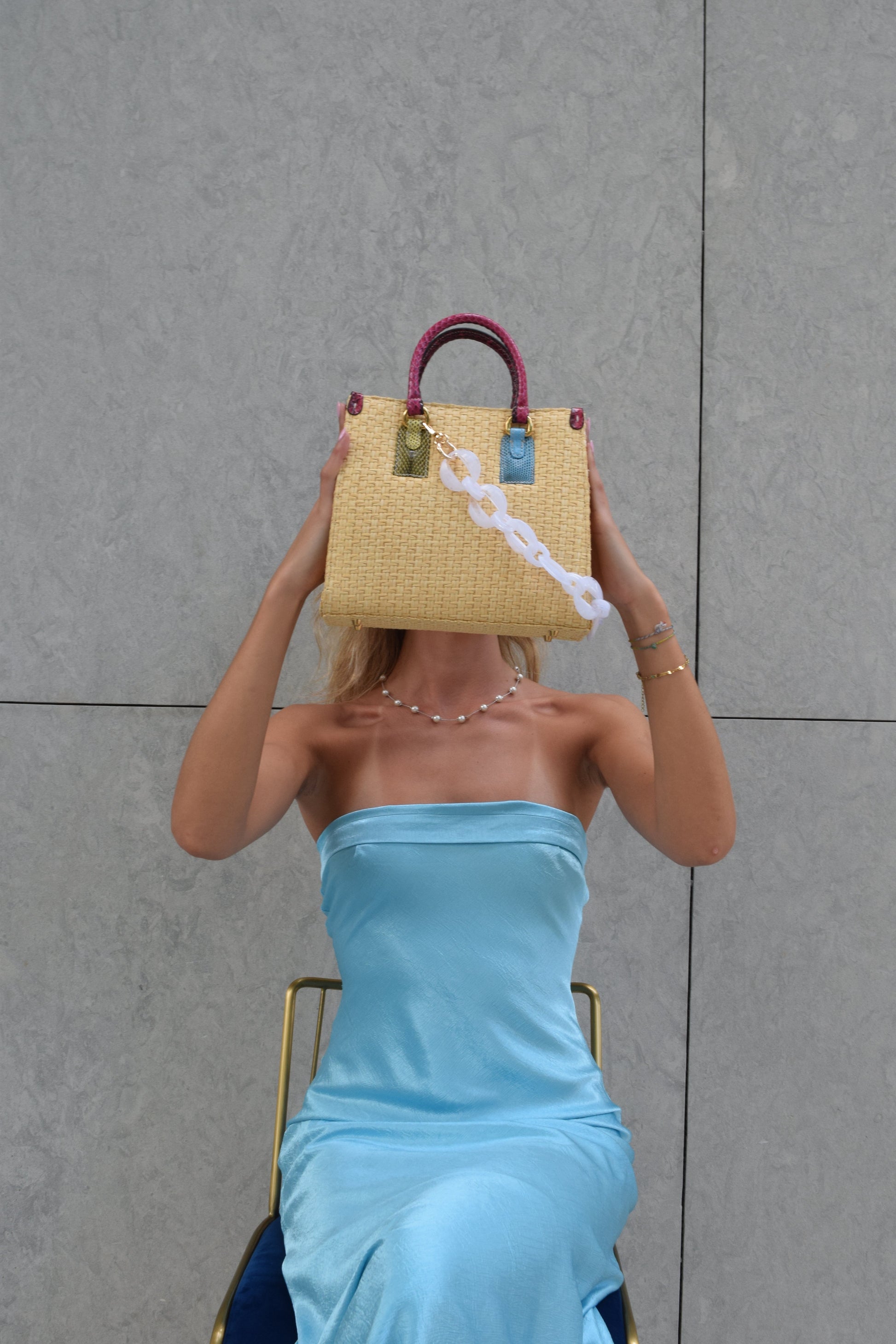 The Havana bag is a flawless blend of sophistication and nature-inspired charm. Crafted with meticulous attention to detail, this bag embodies the essence of summer with its artful combination of premium straw and watersnake. It comes complete with a versatile watersnake strap, allowing it to be elegantly worn as a crossbody. Inside, discover thoughtful organization with a zipper pocket on one side and a convenient open pocket on the other, perfect for your phone or wallet.