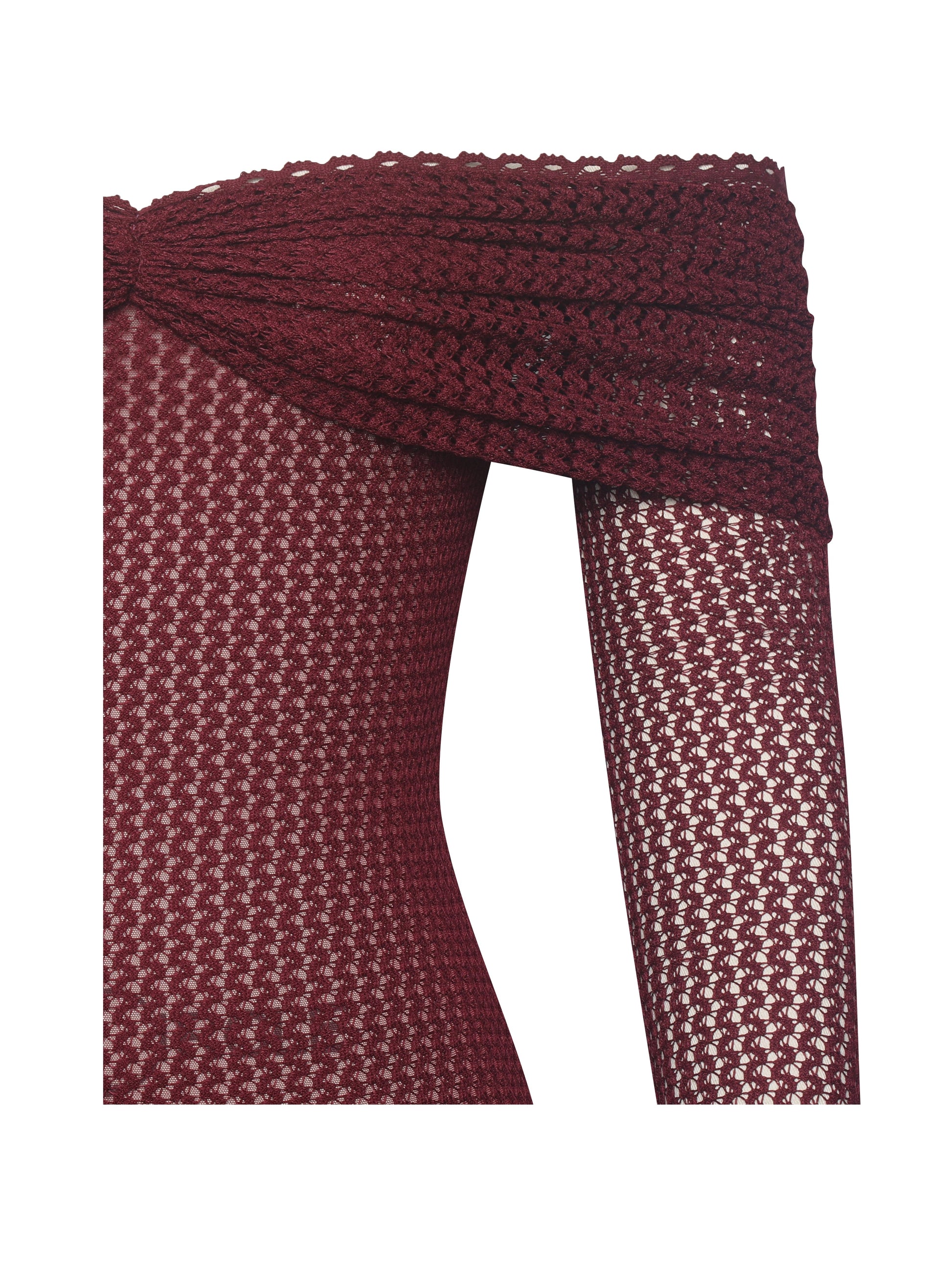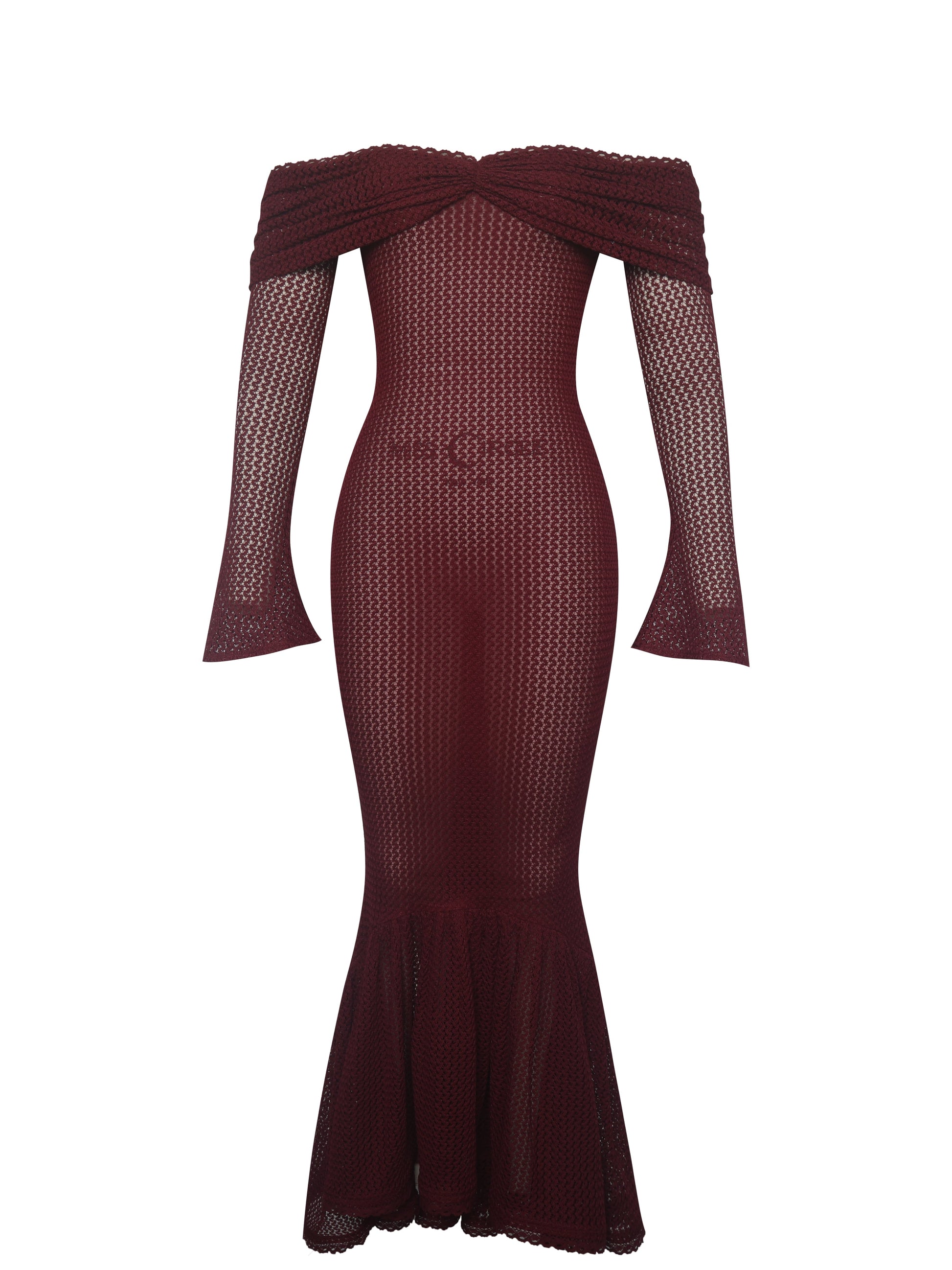 Kaedyn Burgundy Off Shoulder Long Sleeve Crochet Mermaid Maxi Dress
