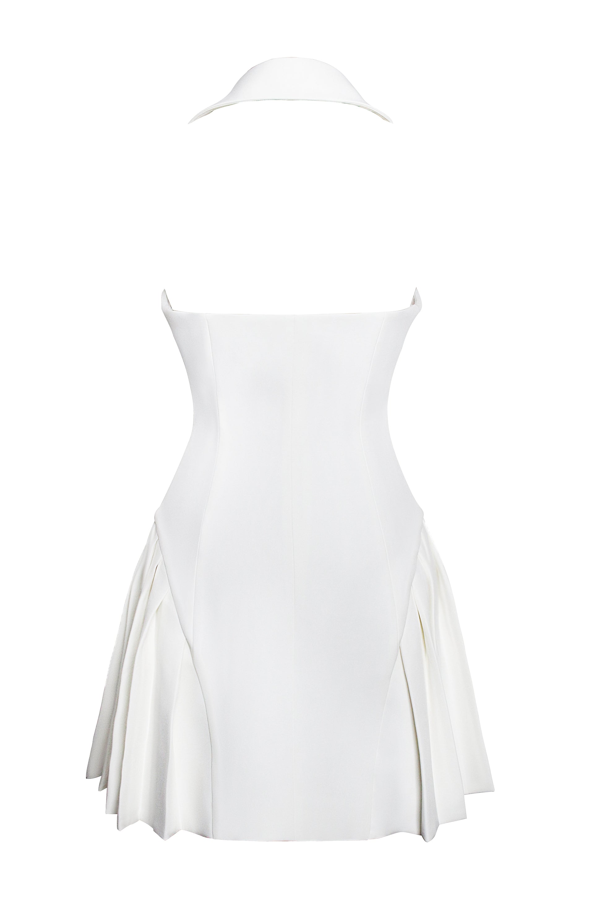 Reyna Beige Backless Pleated Mini Blazer Dress