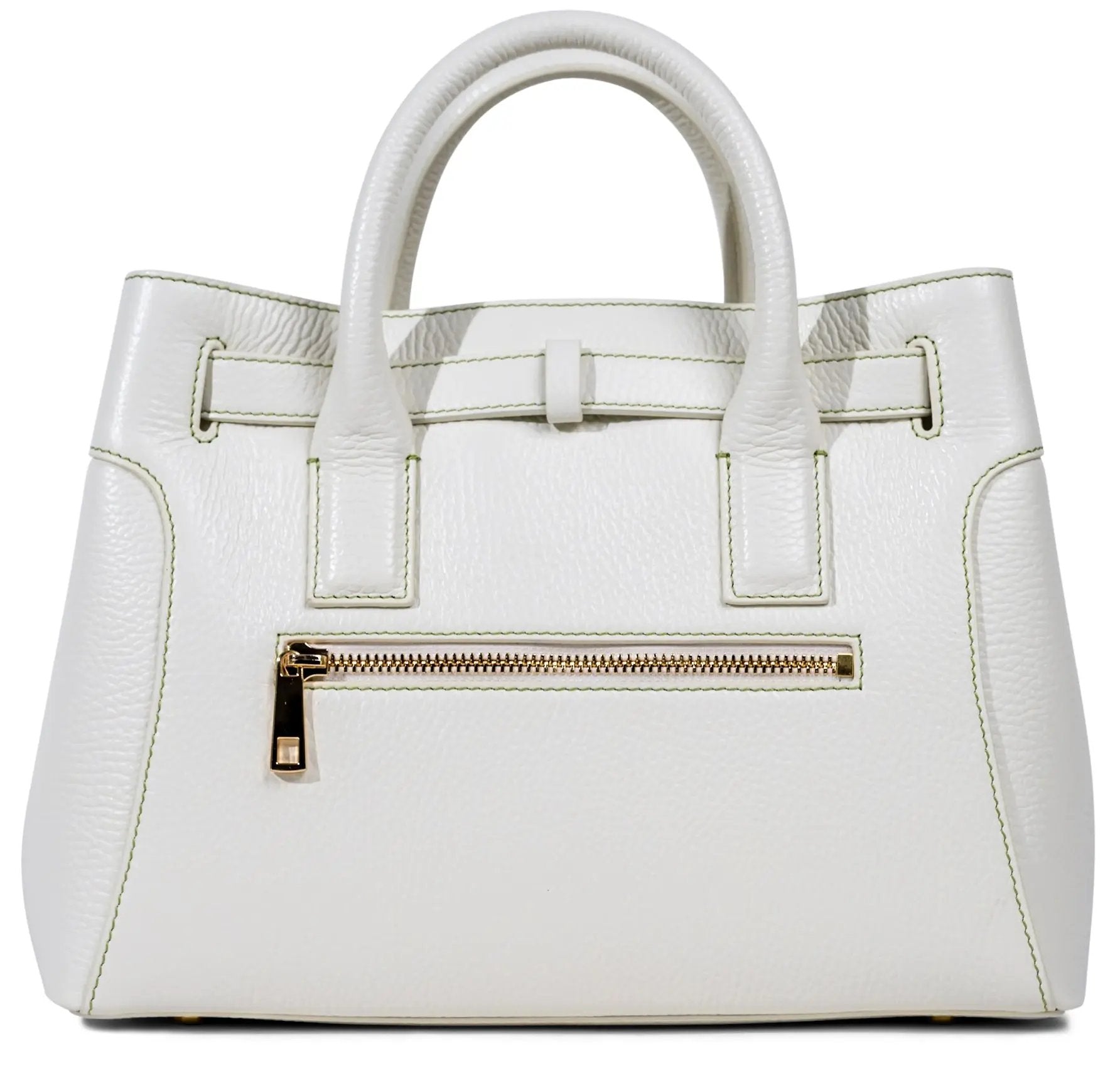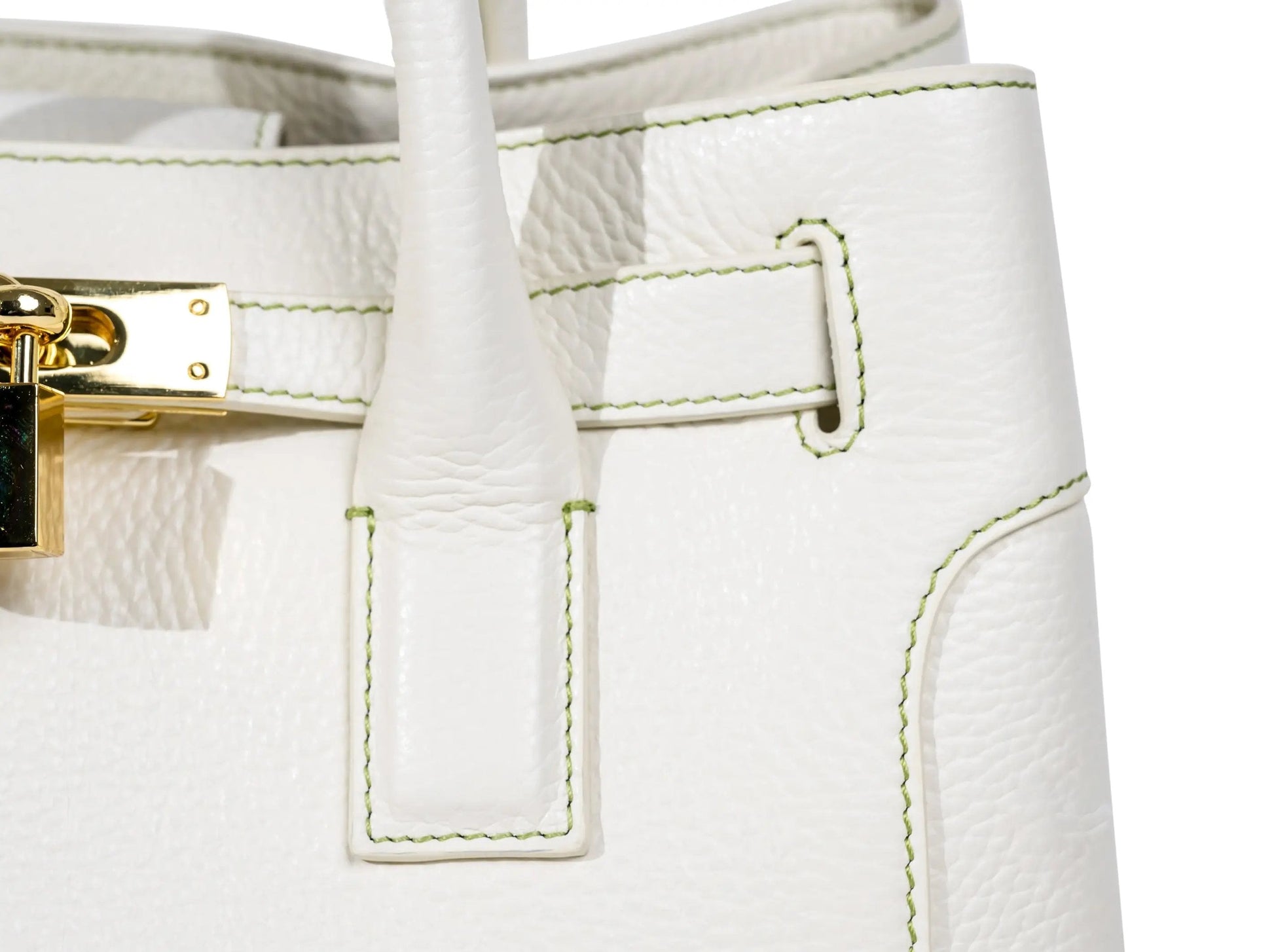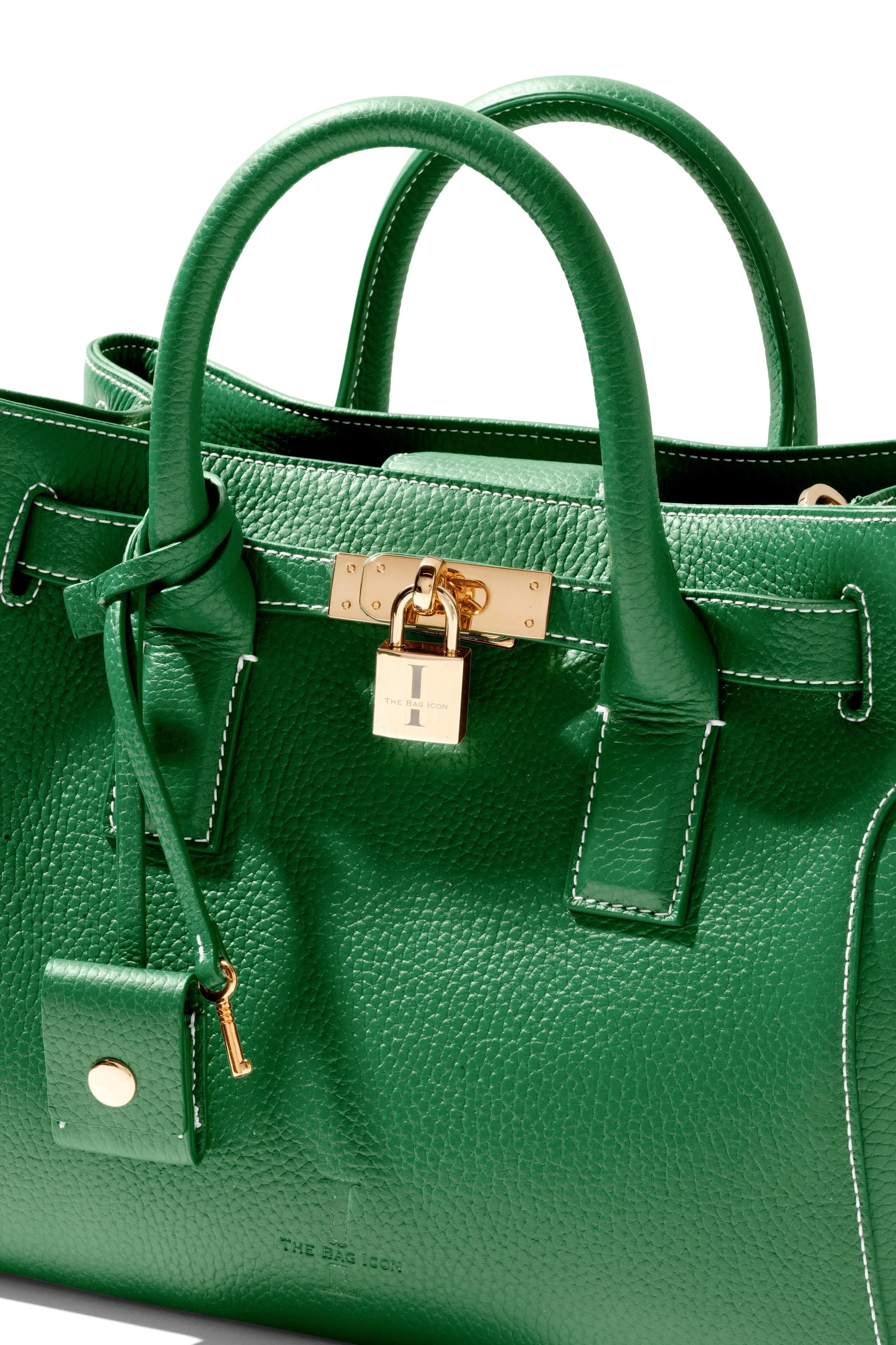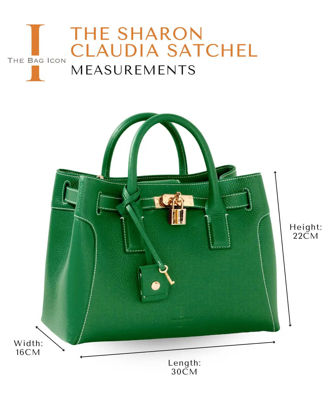This very special handbag was designed to honor the owner's late mother, SHARON CLAUDIA. Handmade in Italy, this classic tote bag exudes sophistication and features soft yet durable full grain pebbled leather and bold gold hardware.