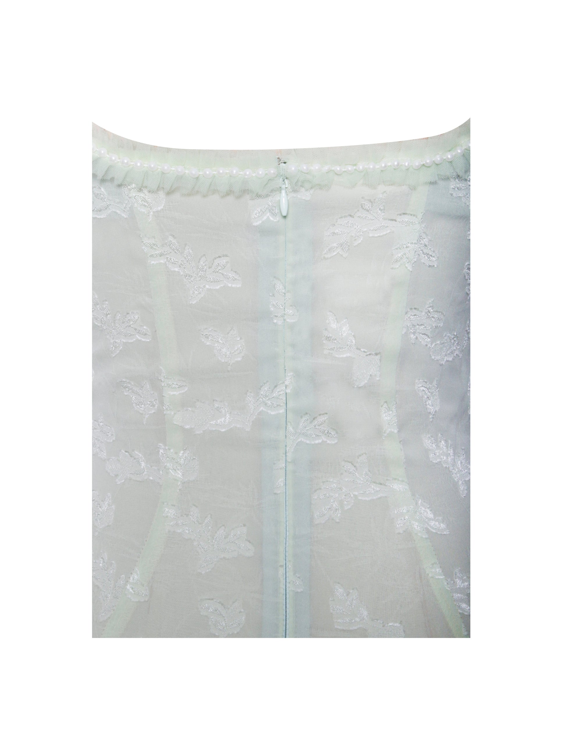 Ulissa Light Green Square Neck Jacquard Textured High Slit Maxi Dress